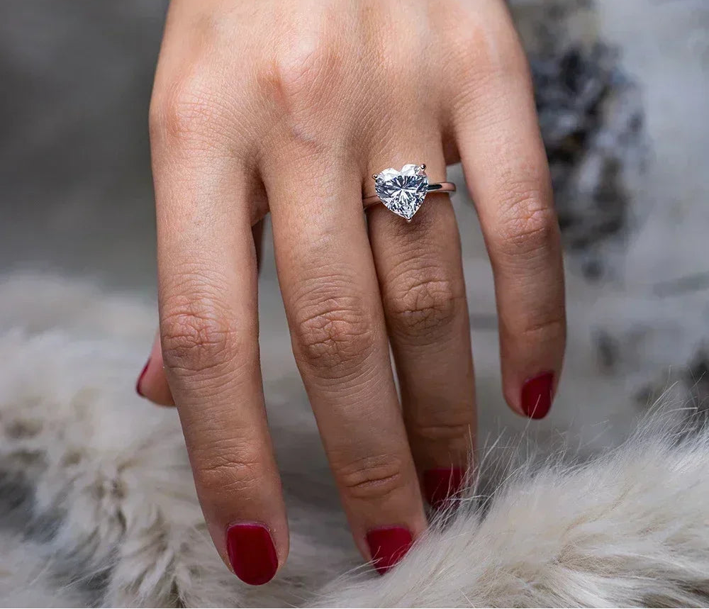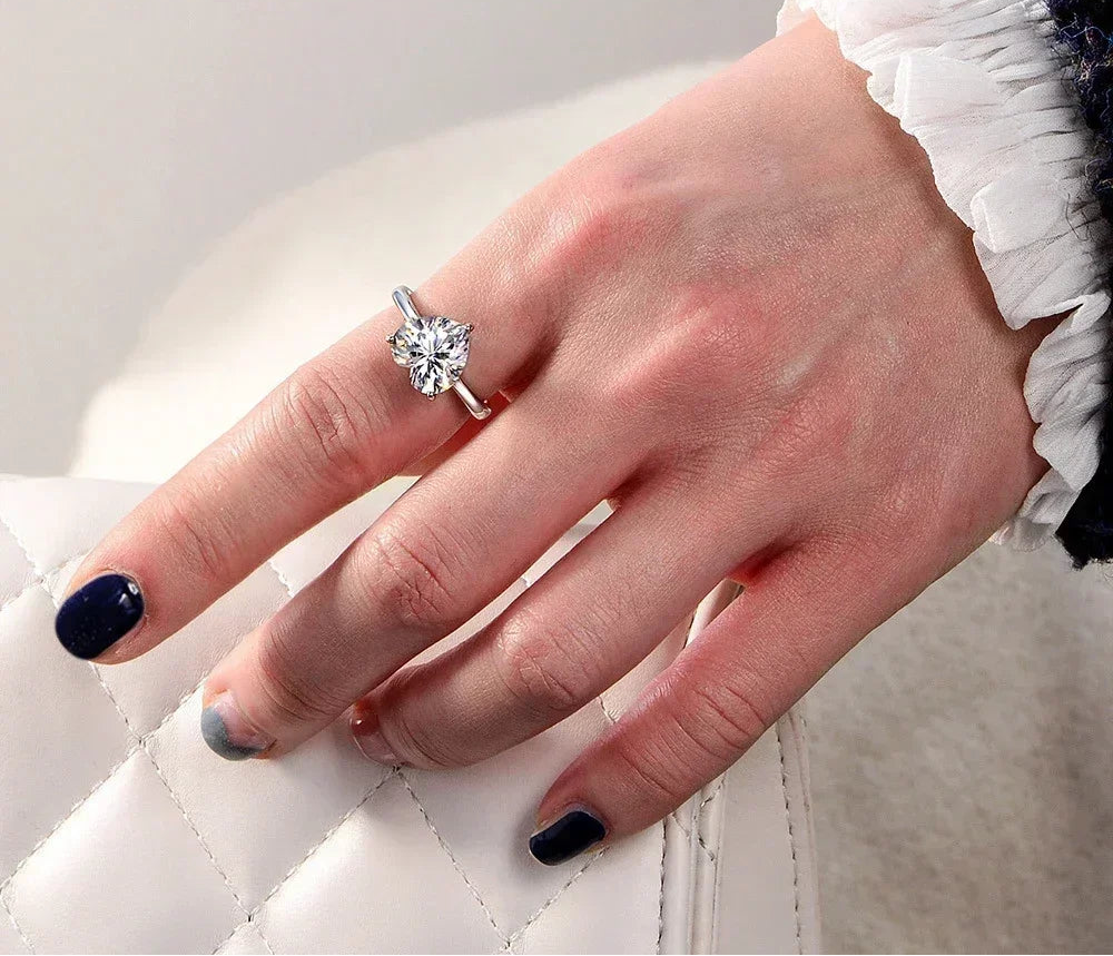Anel solitário de Coração Moissanite - 100% Prata 925