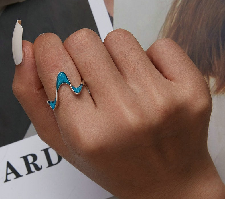 O Anel Ocean possui um design delicado e elegante, confeccionado 100% em Prata 925 com aplicação de esmalte com brilhos em tom de azul claro, representando as ondas do mar.